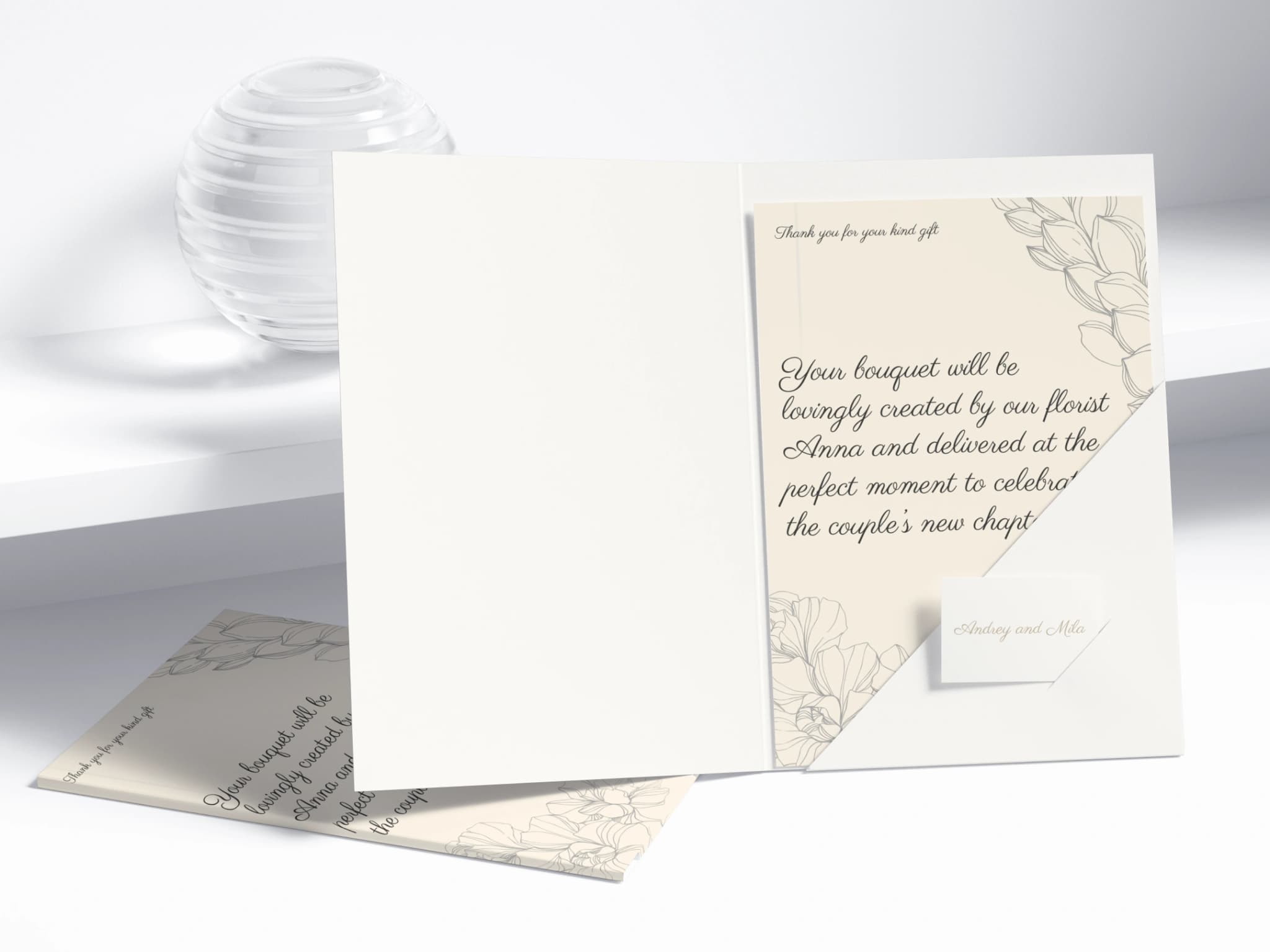 Here you can make a very special gift for us — a bouquet that our florist will carefully prepare for the joyful moments after the wedding.